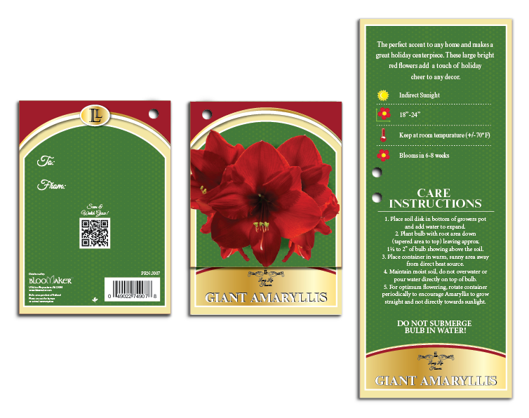 A folding hang tag I designed and produced for Bloomaker Nursery’s for their Christmas plants for 2013.