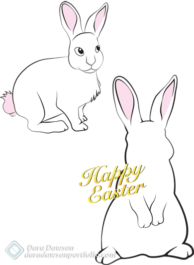 Hand drawn, then vectored illustrations of rabbits for an Easter pot wrap design.
