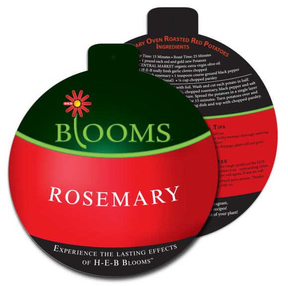 A circle hang tag I created for the HEB Blooms Rosemary hang tags for Christmas 2013.