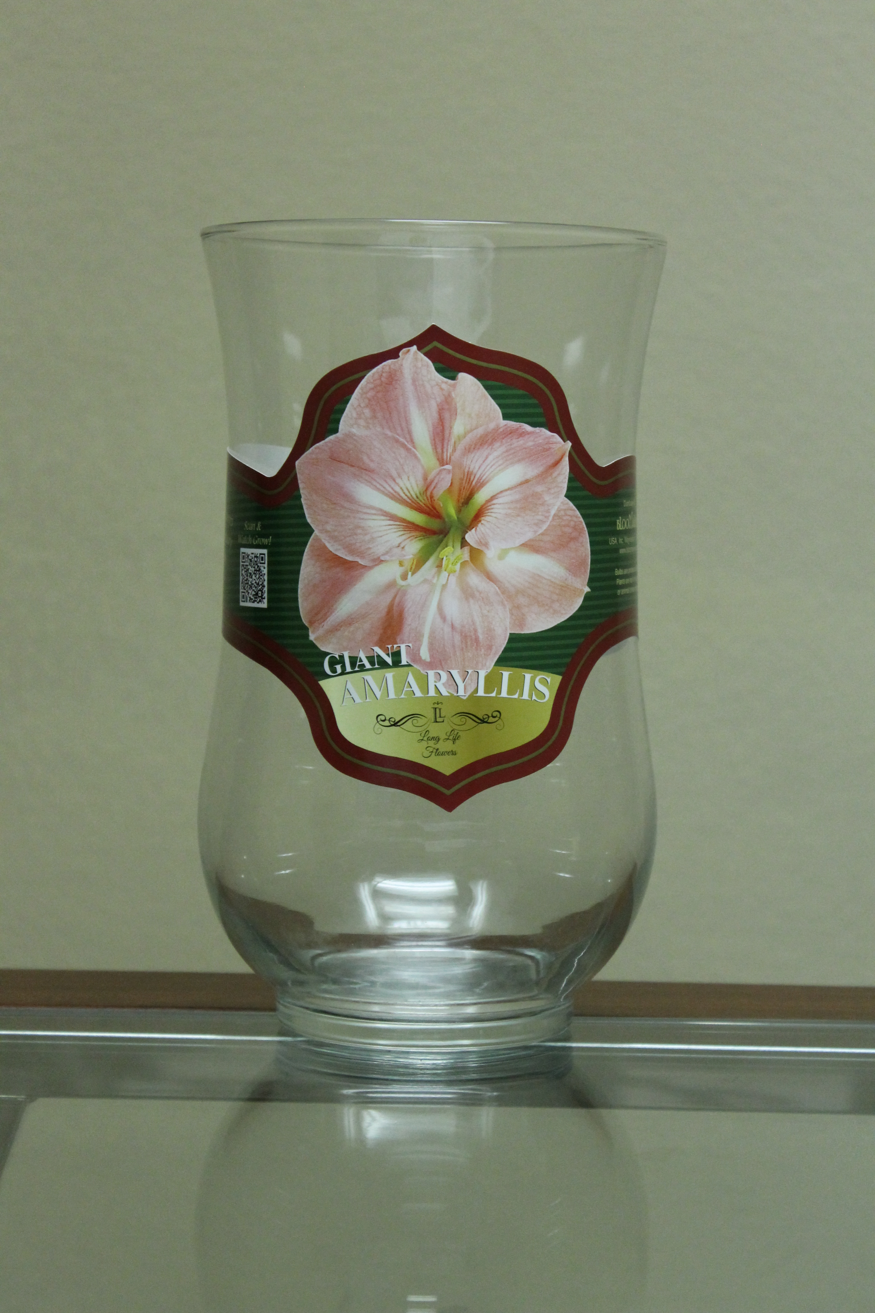 Bloomaker Nursery Amaryllis Wrap on its vase.