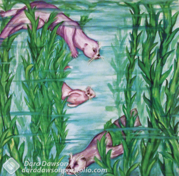 A hand drawn illustration of a family of Otters painted in watercolor.