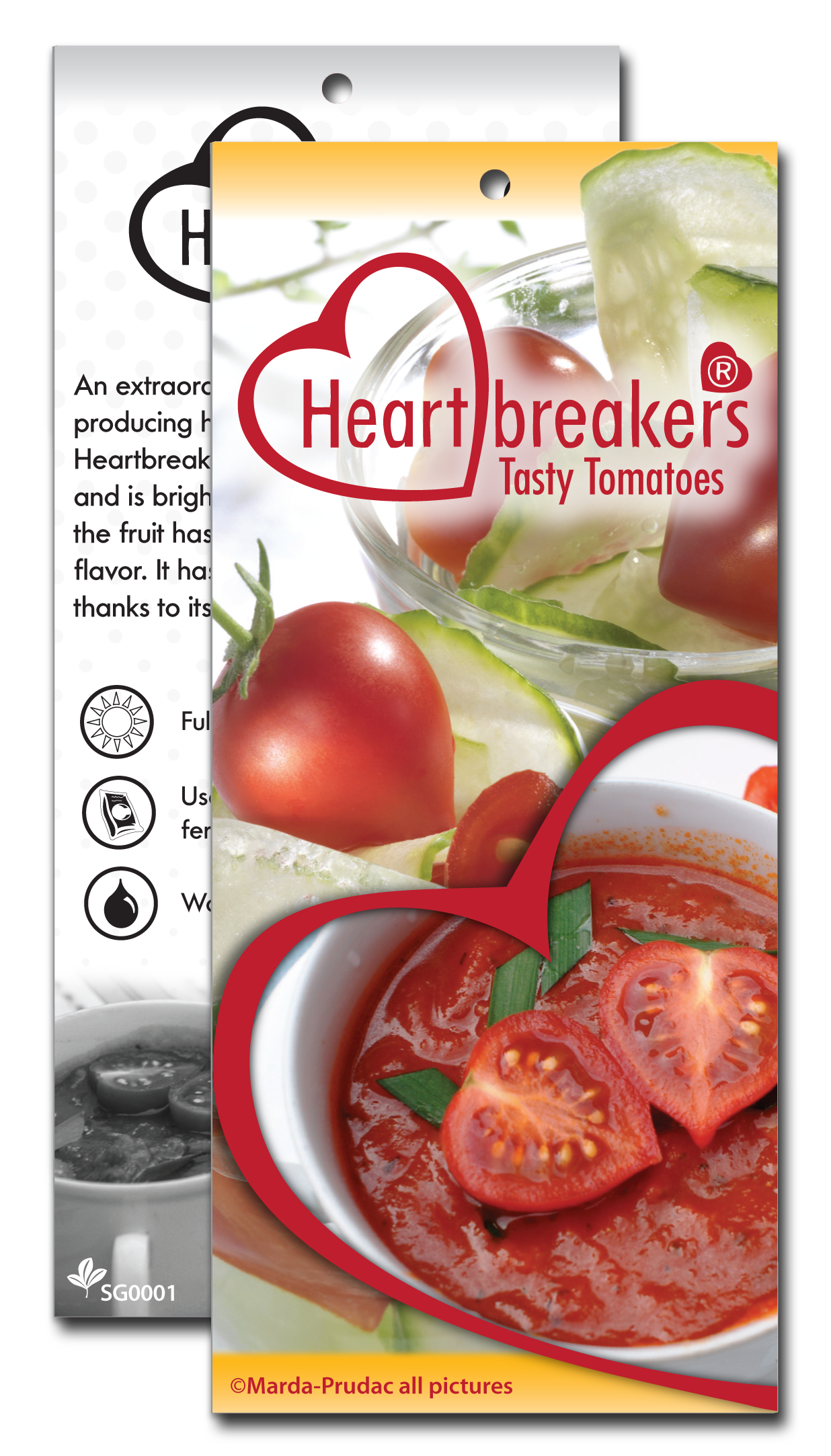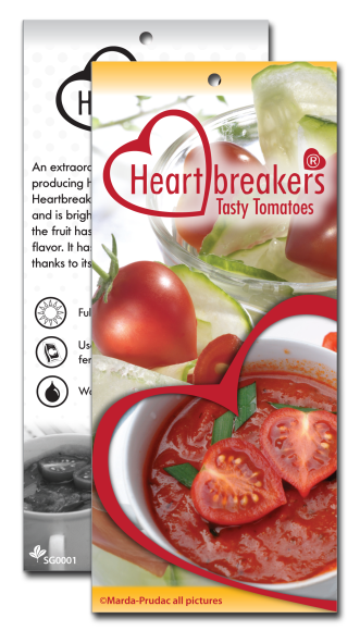 A hang tag designed for Sunshine Growers HeartbreakersĀ® Tasty Tomatoes series.
