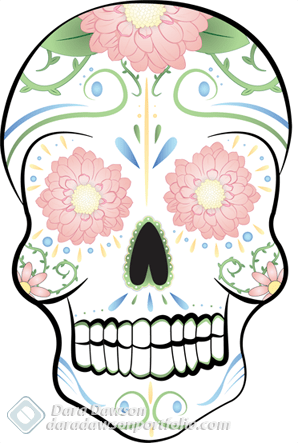 Hand drawn, then vectored illustration of a skull for the Dia de los muertos (Day of the dead) pot wrap for Color Spot Nurseries.