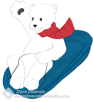 Hand drawn, then vectored illustration of a sledding polar bear for a Christmas design.