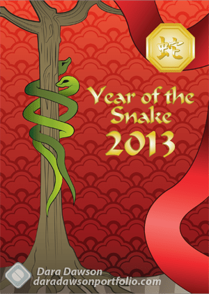 Hand drawn, then vectored illustration for the Year of the Snake bamboo hang tag for Coastal Paradise.